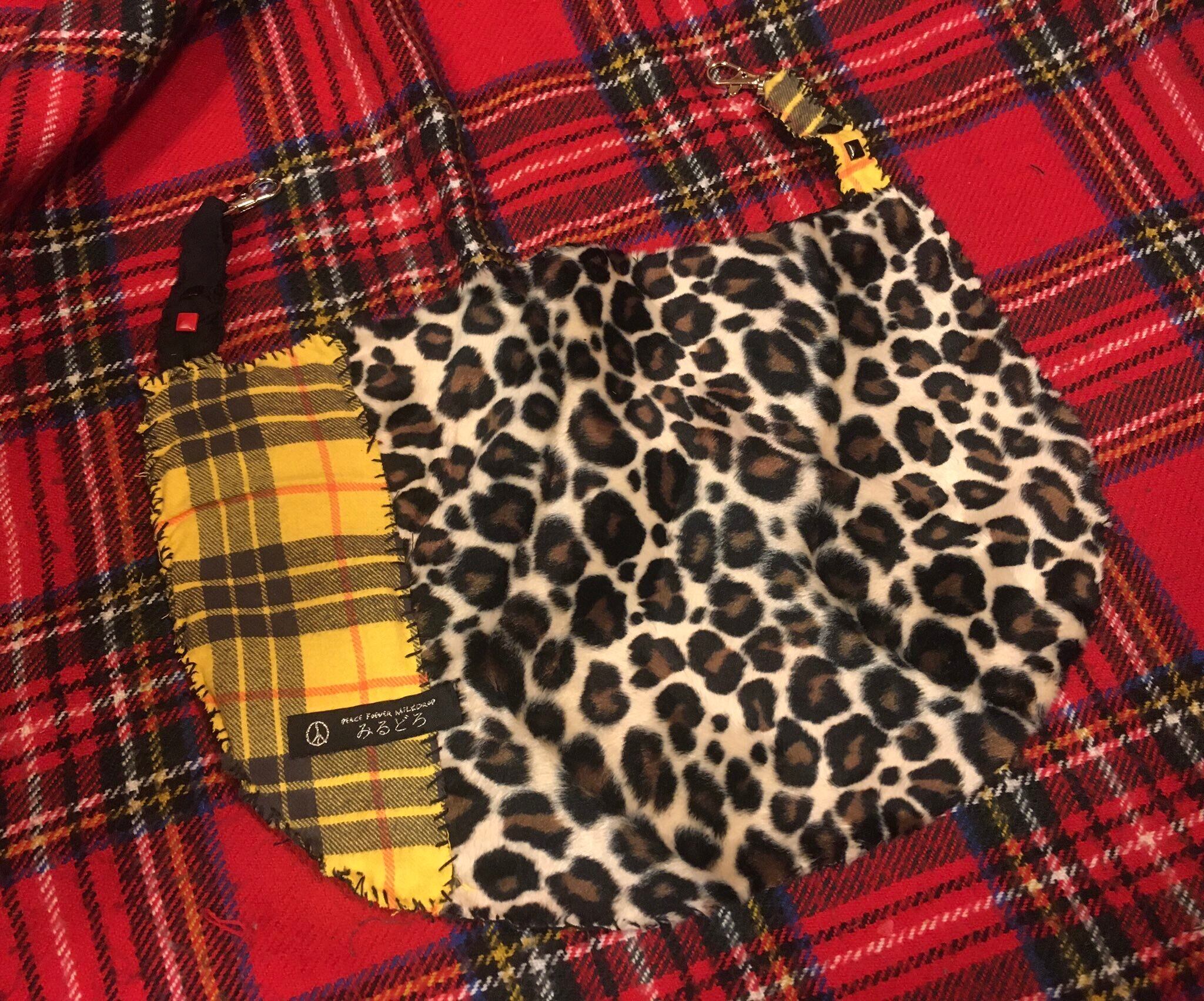 色はヒョウ柄×黄チェック 裏地は黒です。