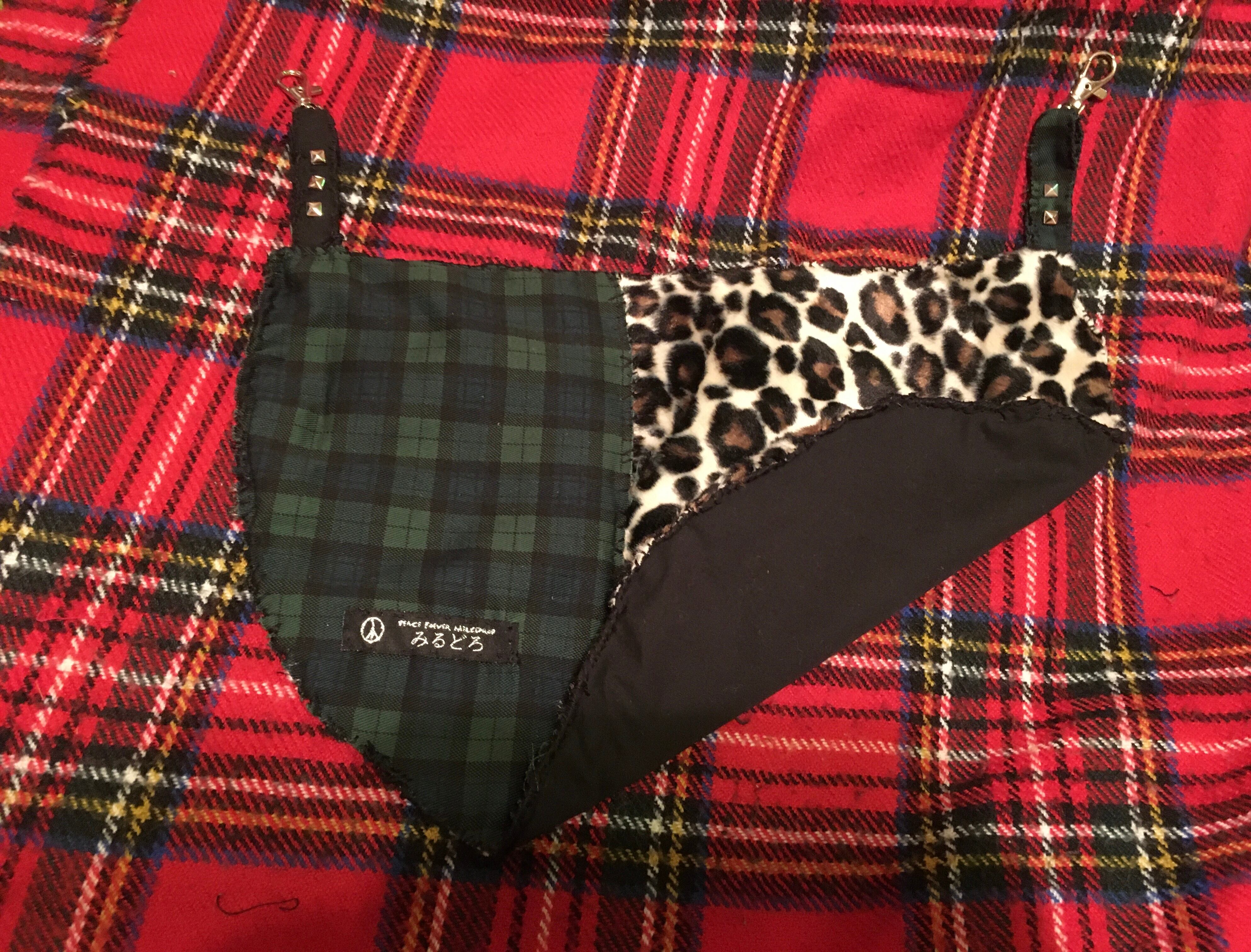 色はヒョウ柄×緑チェック 裏地は黒です。